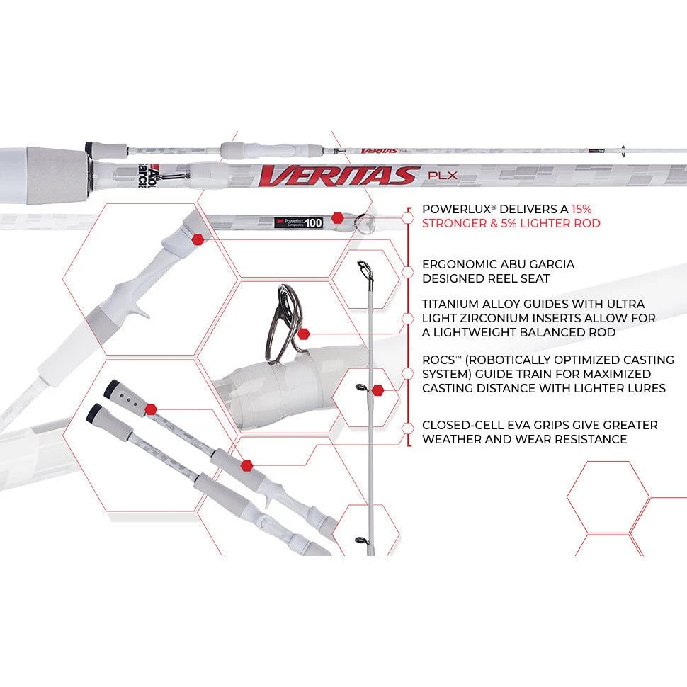 - ABU GARCIA VERITAS LOW PROFILE COMBO: Powerlux 100 delivers a 15% stronger* and 5% lighter** rod while remaining lightweight and well-balanced. Reel features a Duragear brass gear for extended gear life.