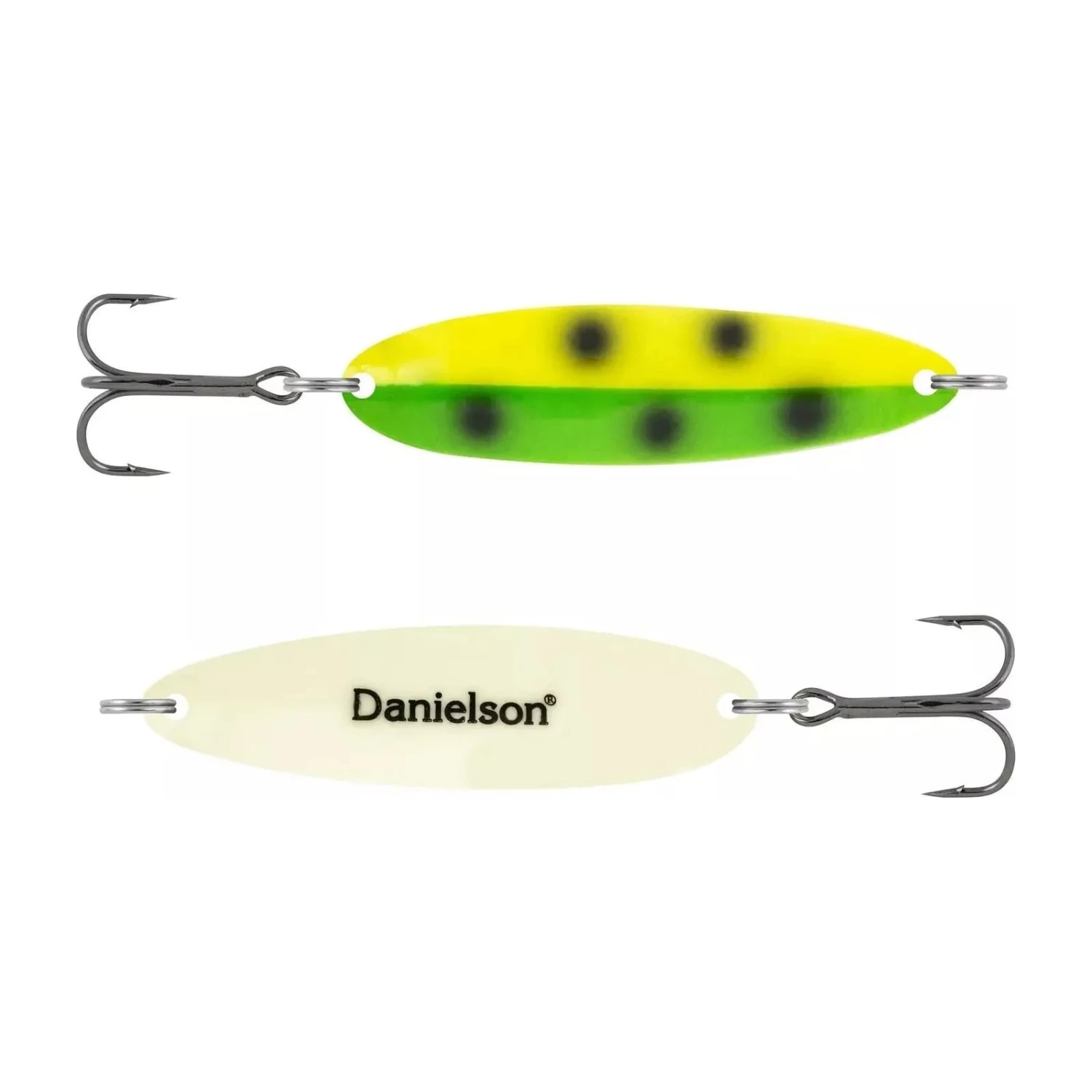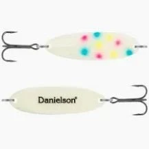 Built to dominate Salmon, Trout and other nocturnal predators. These spoons have full super glow premium paint on the front and back for maximum visibility. Spoons are fully seal coated for maximum durability. 100% brass and built to cast long and retrieve deep. Premium super sharp Danielson hooks for successful hookups.